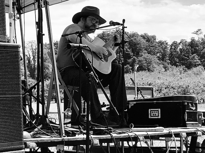 Valentine’s melty solos twirled and tumbled with shimmering brilliance in the late golden sunlight. If you stood at right spot at the top of the farm’s pond, you could hear the elastic slap of Valentine’s guitar ring out like a coyote bark, and ricochet 360 degrees around its great bowl. This sonic effect will stay in my memory for some time.