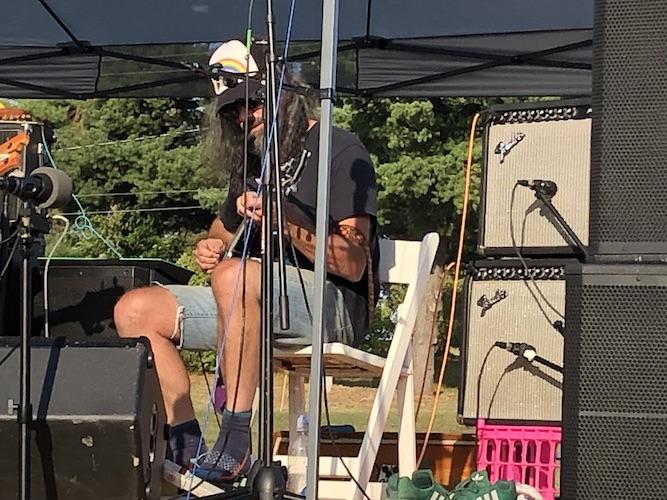 As the first group, Dominick & The Family Band, took the stage around 11:30 AM, some of the early comers got off their feet and danced as buzzards circled overhead. The tie-dyed country rock band blessed the field with positive vibrations, rolling melodies and swirly jams. It was hard not to be reminded of bands like Color Green and the Cactus Blossoms. Yet, when these guys jammed, they jammed hard, sounding like a fried Americana version of Garcia Peoples. I certainly look forward to seeing them again someday!