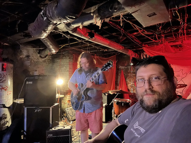 Again, though, you have to understand how this looks in my mind, because the last thing we did before the pandemic was a week through the South with Eight Point Star, which was Mike’s band with Isak Howell. So basically, that was the last thing I remember. We went into a music store in DC and there was hand sanitizer in the store, and I was like, that’s weird. Then the next week, the world was slammed shut. So when things started opening up, and we were lifting the roof off a little bit, and trying to get some sunlight onto the music, one of the first things that happened was Mike said he was going back on tour and was planning on coming through Philly. I was like, well, let’s use this as an opportunity to pick up on some of those threads from two years ago, and maybe do some recording together. How are we gonna do that? We’re just gonna do it on stage as an improvisation.