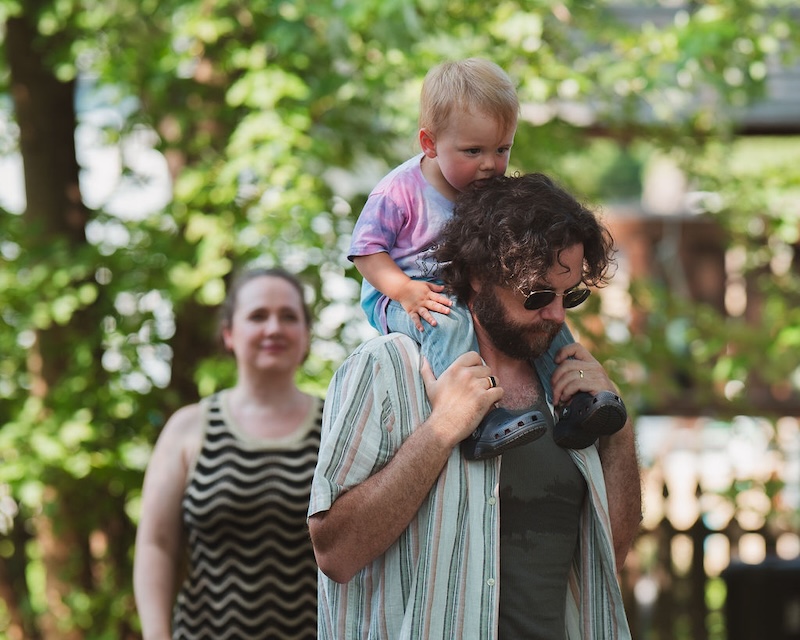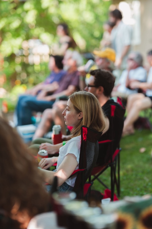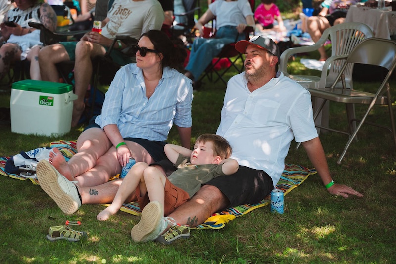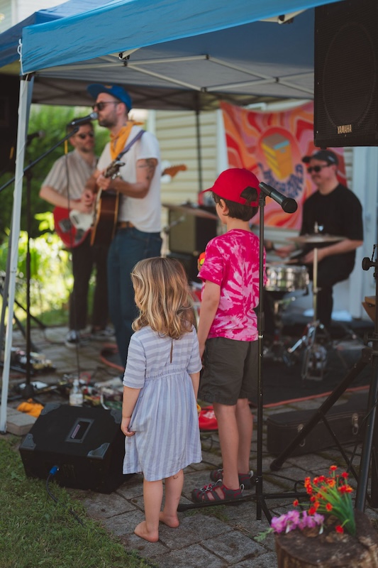 Despite the forecast looking pretty grim all week, we were blessed with blue skies, shining sun and a cool breeze, all while a solid crew of friends, new and old, gathered under our shady maple and borrowed canopies. Welcoming faces of all ages beamed back the same positive energies that the bands were releasing through their performances. The babies and dogs in attendance even appeared to be vibing with the good tunes and peaceful energies. There was so much comfort and joy in the air, it was hard not to just smile the day away.