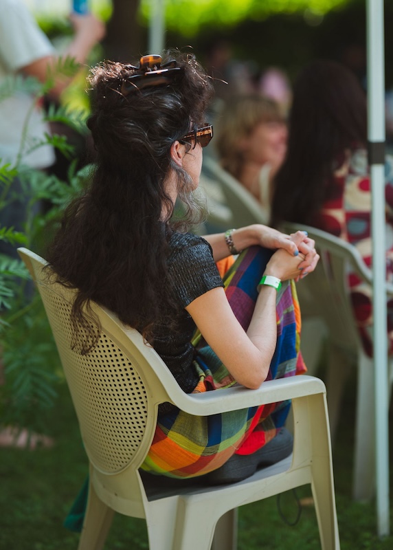 Even though they only had a few loose rehearsals beforehand, these well seasoned players drifted us far into the stars like a tight unit that’s been jamming for decades already. With slow, meditative beats that grew into shimmering slow-mo cymbal crashes and dazzling lap steel work by Annis, the band submerged us into a Popol Vuh-meets-North Americans-like sound bath. These cosmic country soundscapes were as serene and chill as the rising breeze and early streaks of golden hour sunlight that were just beginning to light up our little green space.
