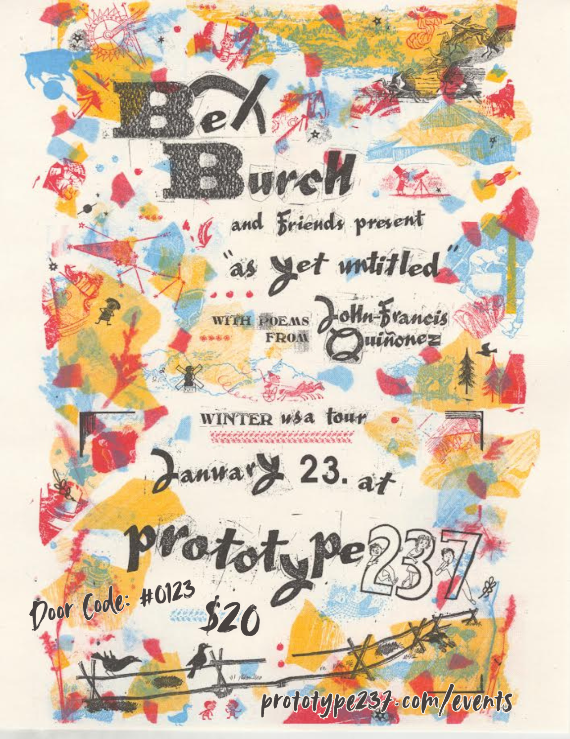 Be sure to follow Prototype 237 on Instagram and to check them out at their site. If you’re free on the night of January 23rd, do not miss Bex Burch, who’ll be touring from Germany with a semi-improvised evening-long jazz piece, “as yet untitled,” with a standalone lineup that includes Joy on Fire’s Anna Meadors on sax and Nick Afflitto from Thieves in Paris on trumpet. The night will also feature poetry by John-Francis Quiñonez. Click here for tickets and more information.