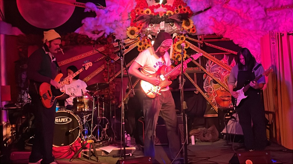 To cap off the evening, we were treated by a spectacularly strong set by the mighty Garcia Peoples. They immediately erupted into a cataclysmic jam before I even had a chance to introduce them on the mic, like as if their music was pent up all day and it just burst forth like an unruly fireball. This jam broke into a particularly propelling version of their classic anthem, “Feel So Great,” from their 2019 album, Natural Facts, the chorus of which I believe summed up the communal sentiment of the entire day: