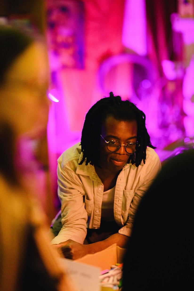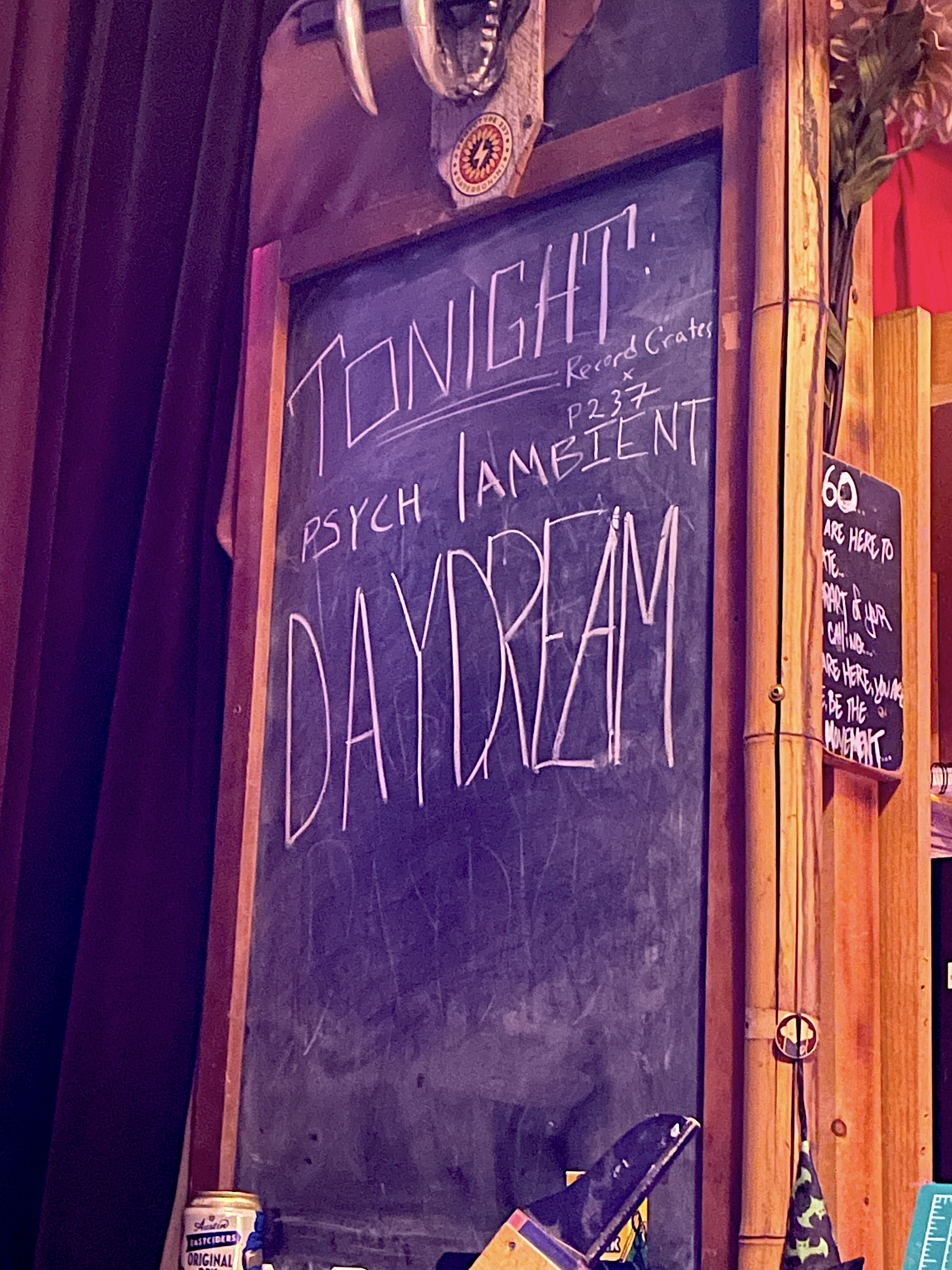 Meanwhile, on Prototype 237’s fourth floor, amongst amazing food and the lovely Crash Doll Vintage’s pop up shop, we had a Take Something Leave Something table, a theremin plugged into effects pedals that anyone could play and a station of tape players loaded with field recording tape loops for people to play in different combinations to create their own analog soundscape in real time, all set to a mellow playlist provided by Jon, the floor’s main resident, and a continuous projected psychedelic film loop that I had pieced together the week before.