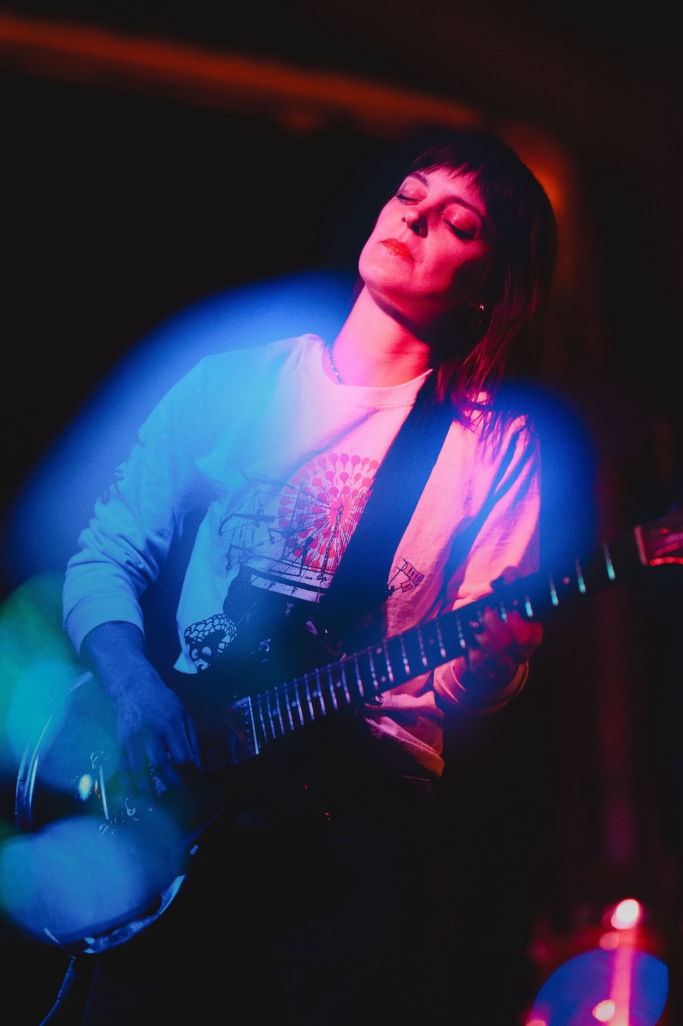 Opening with a fierce and rabid Bo Diddley riff extravaganza and blazing through the night with uncompromisingly deconstructed rock jams that blurred the lines of noise, no wave and post-rock, Robb emphasized the textural and tonal (and atonal) qualities of her instrument and equipment. Her final jam of the night featured lots of grinding against the grain of her guitar strings and even taking a large bow to her instrument, which created walls of howling and shrieking distortion. It was like she was channeling the entire blown-out sound of The Velvet Underground’s infamous Amp Tapes recording through her single fuzzed-up instrument. We were stunned and beyond thrilled. If you ever get a chance to catch Robb performing live, do not sleep on the opportunity!